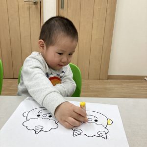 今日は節分という事で鬼のぬりえを行いました。