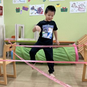 ジャンプでバランスブロックの上を移動したり、