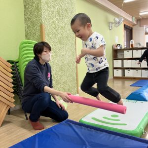 マットの滑り台や棒を一生懸命跳んで頑張りましたよ🎶